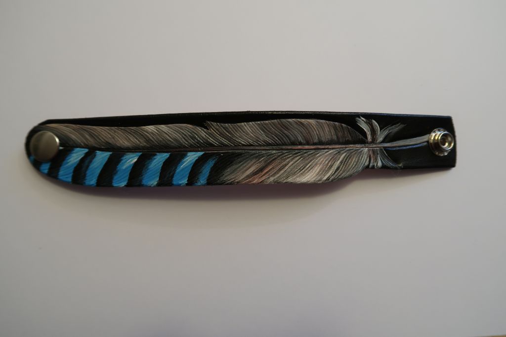 Kožený náramek se zapínáním na druk, ručně řezané, malované, lakované. Délka dle požadavku.